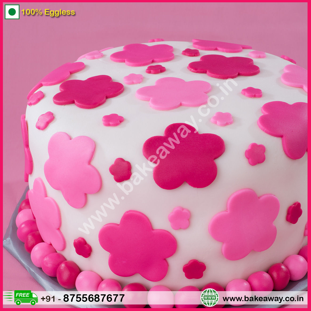 Pink Floral Designed Chocolate Cake